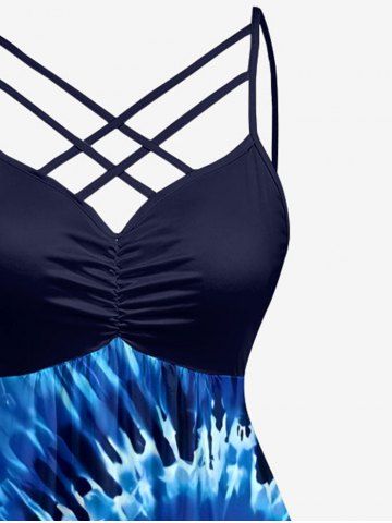 Plus Size Spiral Tie Dye Print Hawaii Ruched Crisscross Strappy A Line Cami Dress - Blue - Xs