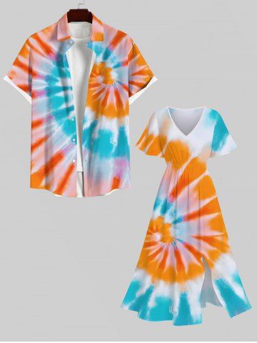 Graphic Dresses > Plus Size Spiral Tie Dye Print Hawaii Split Pocket A Line Midi Dress