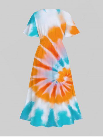 Plus Size Spiral Tie Dye Print Hawaii Split Pocket A Line Midi Dress - Multi-a - 6x