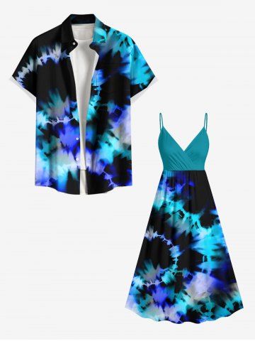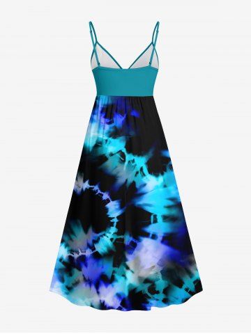 Graphic Dresses > Plus Size Spiral Tie Dye Print Hawaii Surplice A Line Cami Dress