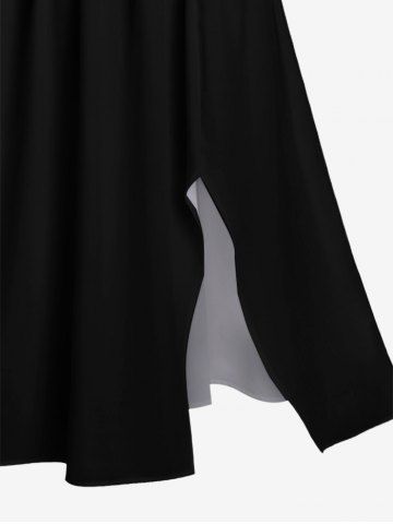 Plus Size Split Pocket Solid A Line Midi Dress - Black - S