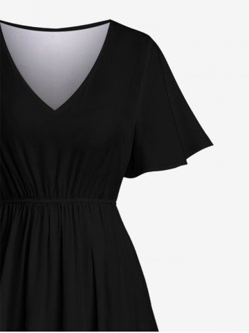 Plus Size Split Pocket Solid A Line Midi Dress - Black - 4x