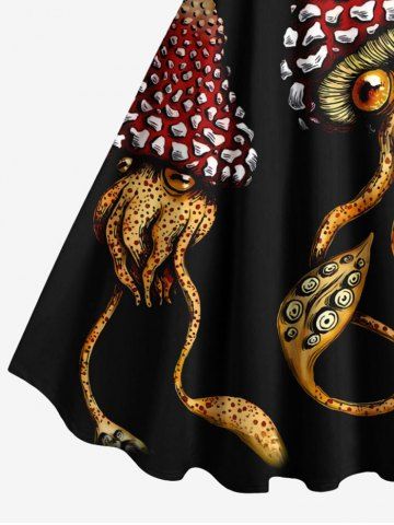 Plus Size Squid Mushroom Print Hawaii A Line Tank Dress - Black - S