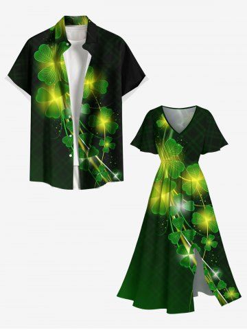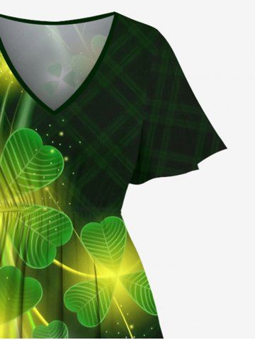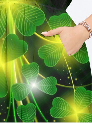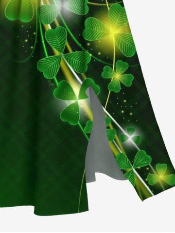 Graphic Dresses > Plus Size St. Patrick's Day Clover Leaf Glitter 3D Print Split Midi Dress