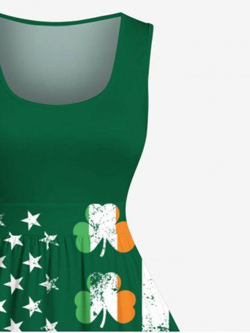 Plus Size St. Patrick's Day Clover Leaf Patriotic American Flag Print 1950s Vintage Dress - Green - Xs