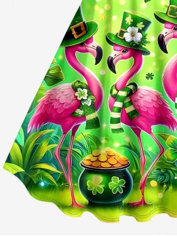 Plus Size St. Patrick's Day Flamingo Butterfly Flowers Clove Print Tank Dress - Green - S