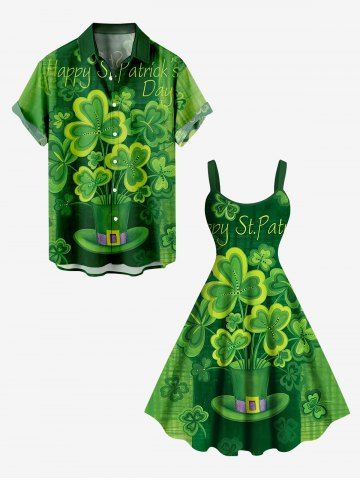 Plus Size St. Patrick's Day Hat Clover Leaf Print Tank Dress - Green - 6x
