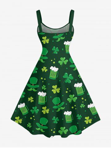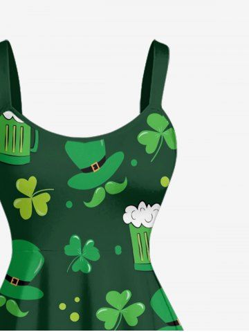 Plus Size St. Patrick's Day Hat Cloves Beer Print Tank Dress - Deep Green - Xxs