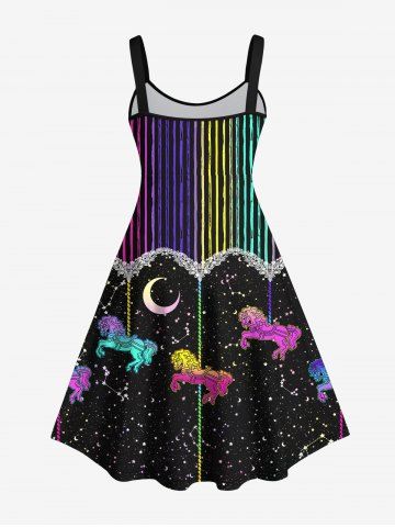 Plus Size Star Moon Carousel Applique 3D Print Lolita Tank Dress - Black - M