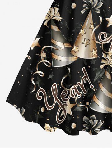 Plus Size Star Striped Hat Letters Galaxy Print New Years A Line Tank Dress - Black - 5x