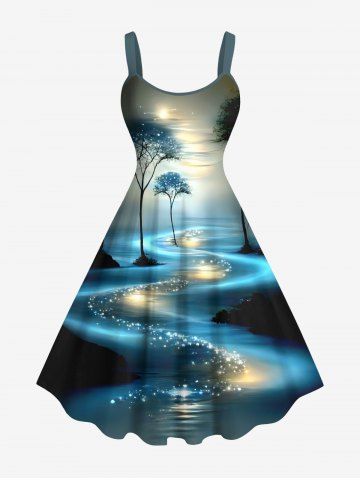 Graphic Dresses > Plus Size Star Tree Sparkling Sequin Glitter 3D Print Hawaii Tank Dress
