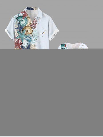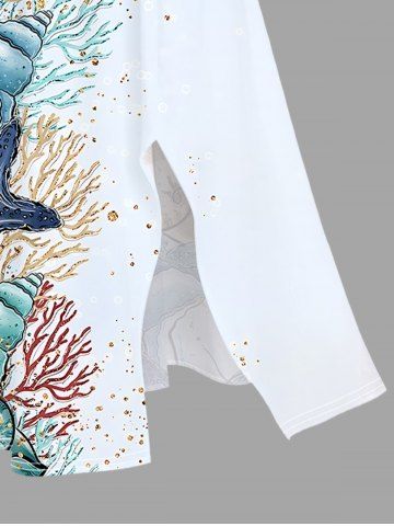 Plus Size Starfish Conch Coral Print Split Hawaii Midi Dress - Light Blue - M