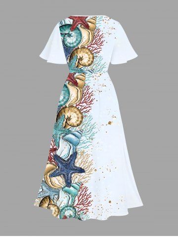 Graphic Dresses > Plus Size Starfish Conch Coral Print Split Hawaii Midi Dress