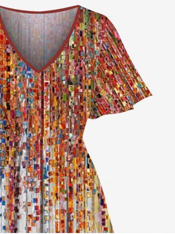 Plus Size Stripes Sparkling Sequin 3D Print Split Hawaii Midi Dress - Orange - L