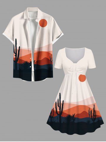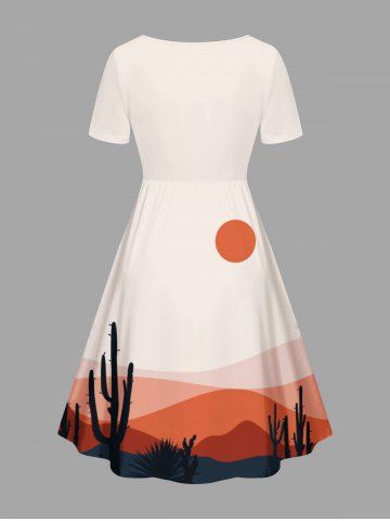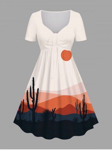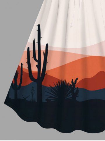 Graphic Dresses > Plus Size Sun Cactus Desert Colorblock Print Cinched Hawaii Dress