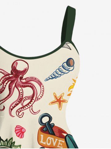 Plus Size Sun Mermaid Sailboat Octopus Sea Waves Shell Print Hawaii A Line Tank Dress - Beige - 1x