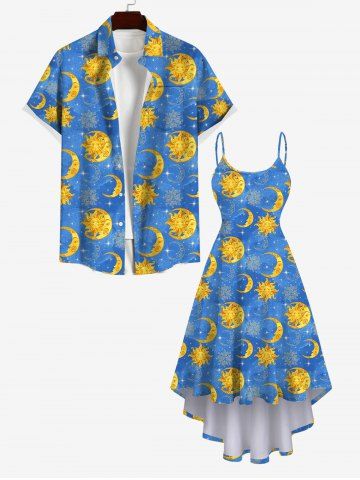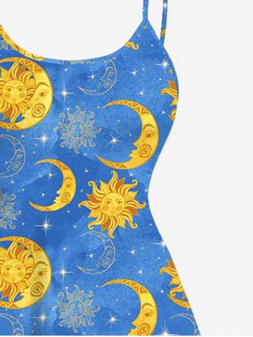 Plus Size Sun Moon Glitter Stars Print High Low Asymmetric A Line Cami Dress - Blue - M