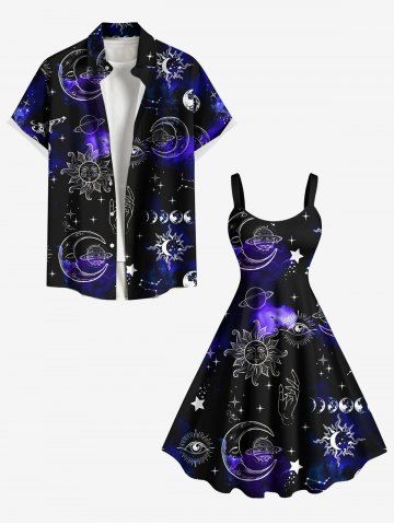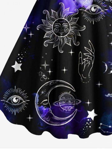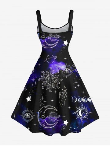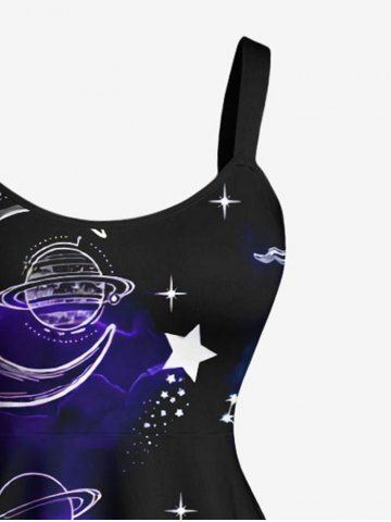 Graphic Dresses > Plus Size Sun Moon Planet Galaxy Print A Line Tank Dress