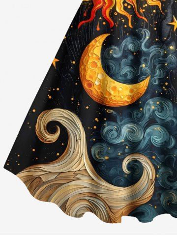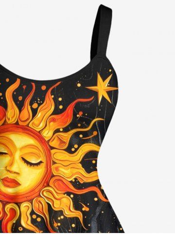 Plus Size Sun Moon Star Cloud Galaxy Print A Line Tank Dress - Black - 3x