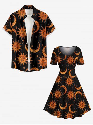 Plus Size Sun Moon Star Face Print A Line Dress - Black - Xs