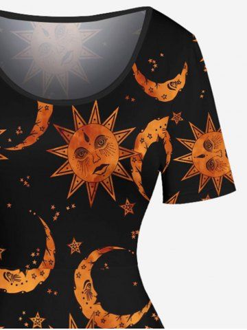 Plus Size Sun Moon Star Face Print A Line Dress - Black - L