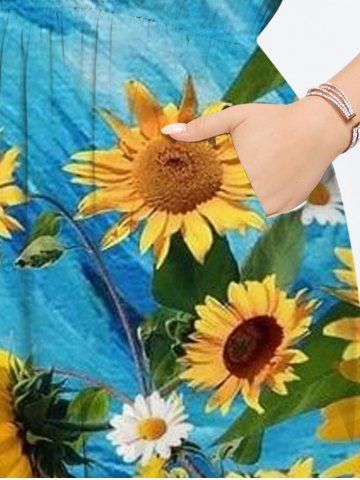 Hawaii Plus Size Sunflower Daisy Painting Print Split Pocket A Line Dress - Multi-a - L