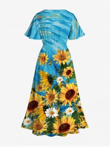 Graphic Dresses > Hawaii Plus Size Sunflower Daisy Painting Print Split Pocket A Line Dress