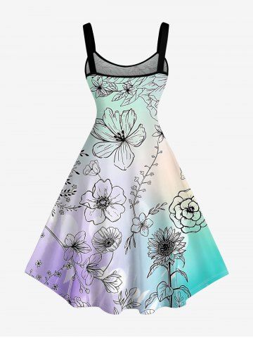 Plus Size Sunflower Leaf Ombre Print Hawaii Tank Dress - Multi - 3x