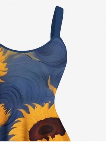 Graphic Dresses > Plus Size Sunflower Print Hawaii A Line Dress