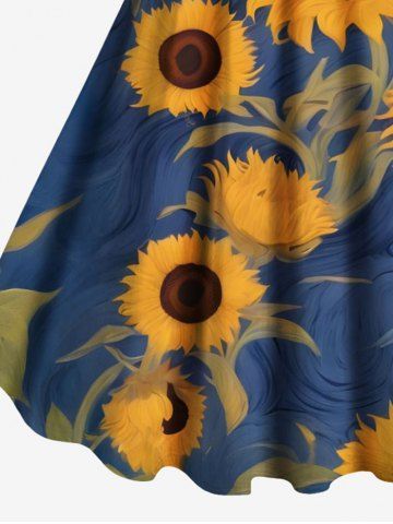 Graphic Dresses > Plus Size Sunflower Print Hawaii A Line Dress