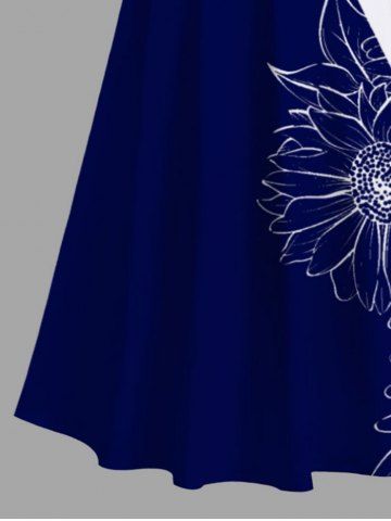 Plus Size Sunflower Two Tone Print Hawaii Cold Shoulder Crisscross A Line Maxi Dress - Blue - 2x