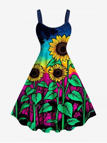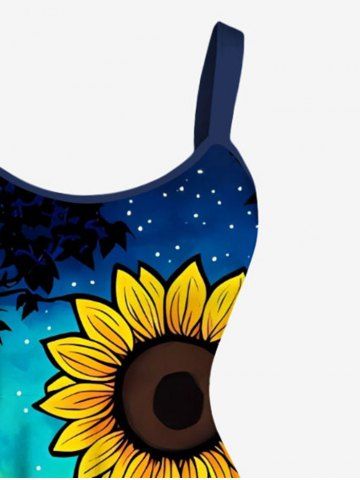 Plus Size Sunflowers Leaf Galaxy Print Hawaii Tank Dress - Multi - Xs