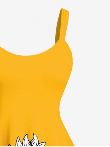 Graphic Dresses > Plus Size Sunflowers Leaf Print Hawaii Tank Dress