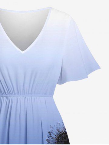 Plus Size Sunflowers Ombre Print Split Hawaii Midi Dress - Deep Blue - S