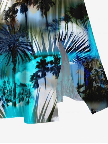 Graphic Dresses > Plus Size Tie Dye Colorblock Coconut Tree Print Split Hawaii Midi Dress
