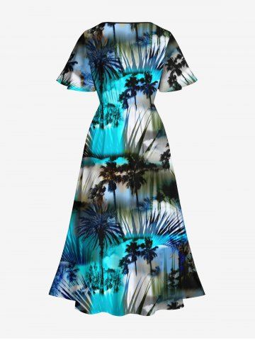 Graphic Dresses > Plus Size Tie Dye Colorblock Coconut Tree Print Split Hawaii Midi Dress