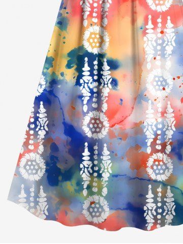 Graphic Dresses > Plus Size Tie Dye Ethnic Graphic Print Hawaii Surplice A Line Cami Dress