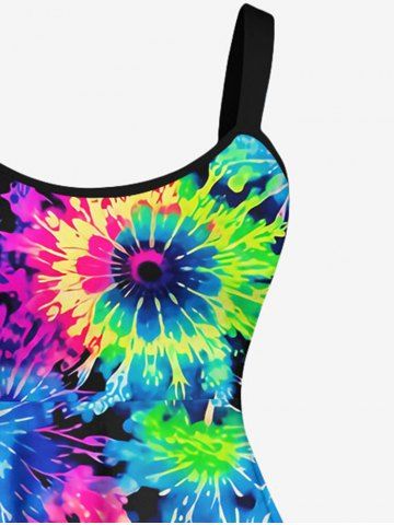 Graphic Dresses > Plus Size Tie Dye Floral Print Hawaii Backless A Line Tank Dress