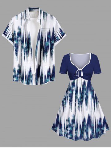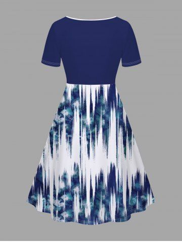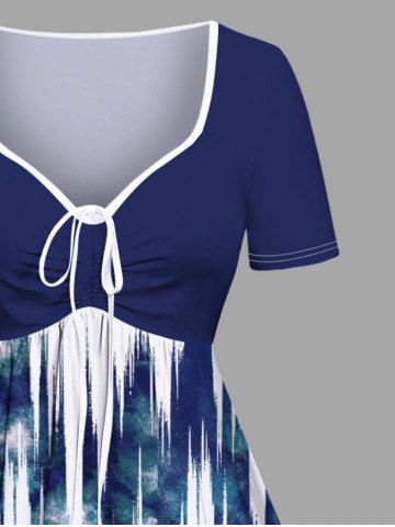 Plus Size Tie Dye Ombre Light Wave Print Hawaii Cinched A Line Dress - Blue - 2x