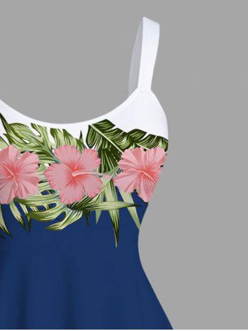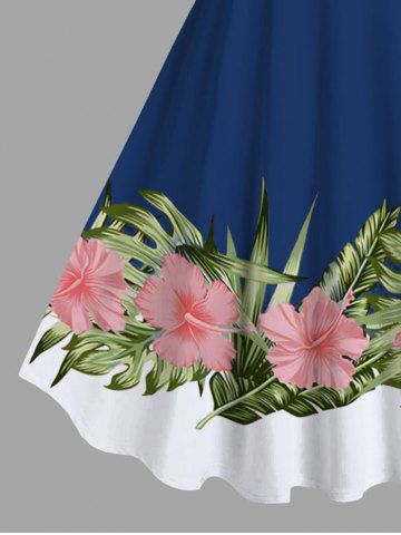 Plus Size Topical Leaf Hibiscus Flower Print Hawaii Tank Dress - Blue - 5x