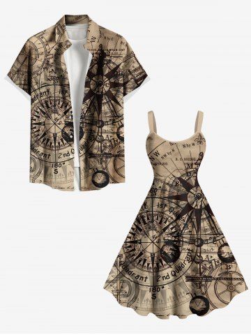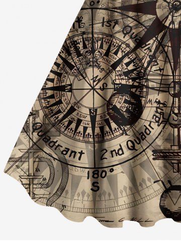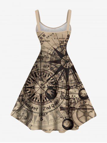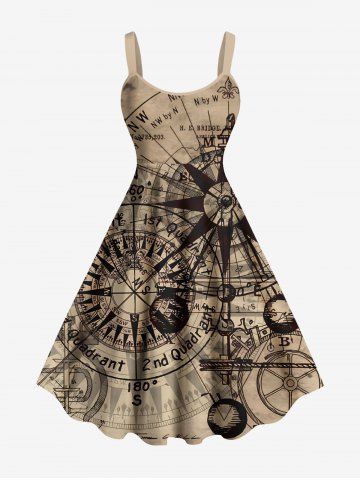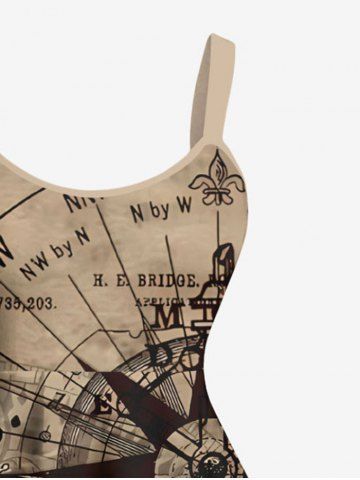 Plus Size Travel Sea Nautical Compass Cruise Print Hawaii Tank Dress - Coffee - 1x