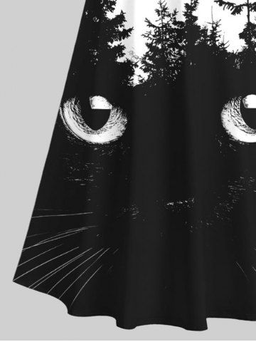 Plus Size Tree Forest Cat Print Halloween Costume Crisscross A Line Maxi Dress - Black - 4x