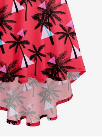 Plus Size Triangle Geometric Coconut Tree Print High Low Asymmetric Hawaii A Line Cami Dress - Red - M