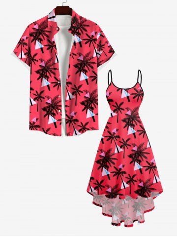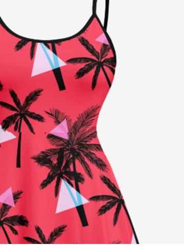 Plus Size Triangle Geometric Coconut Tree Print High Low Asymmetric Hawaii A Line Cami Dress - Red - 2x