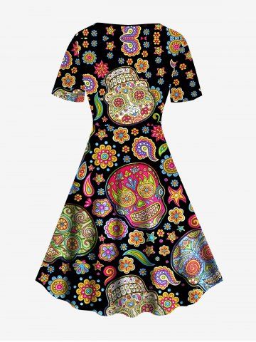 Plus Size Tribal Paisley Skull Print A Line Dress - Black - M | Us 10