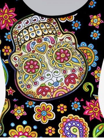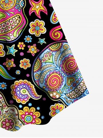 Plus Size Tribal Paisley Skull Print A Line Dress - Black - 5x | Us 30-32