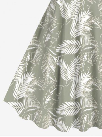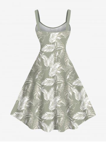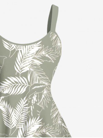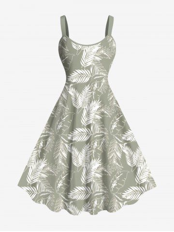 Plus Size Tropcal Leaf Print Hawaii Tank Dress - Light Green - 1x