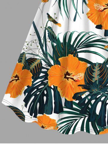 Graphic Dresses > Plus Size Tropcial Leaf Hibiscus Flowers Print Cinched Hawaii Dress