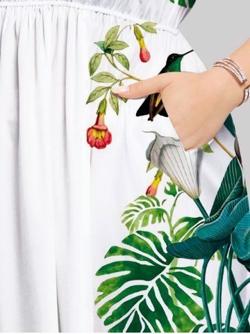Graphic Dresses > Plus Size Tropical Coconut Leaves Floral Print Hawaii Split Pocket A Line Midi Dress