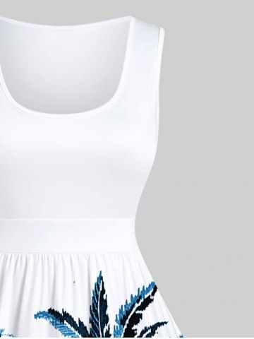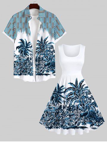 Graphic Dresses > Plus Size Tropical Coconut Tree Flamingo Stripes Print Hawaii Vintage Dress